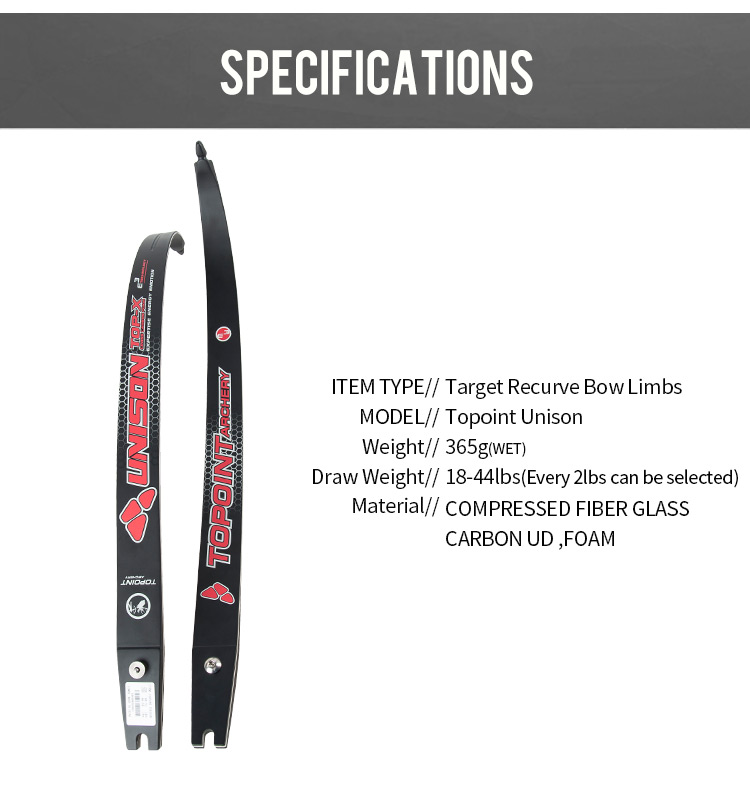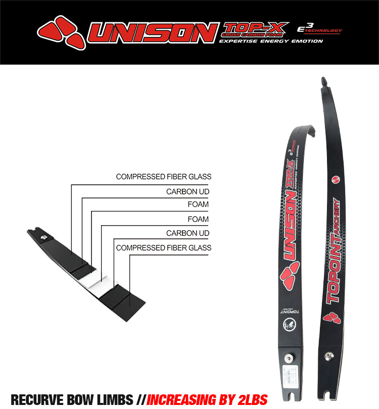 TOPOINT ARCHERY UNISON ILF Recurve Bow Limbs 66/68/70inch, Carbon/Foam Limbs 22-48lbs, Compatible for 25” Riser, for Adult,Youth and Teens