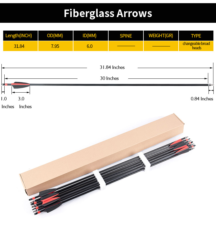 TOPOINT 30inch 8mm Fiberglass Hunting Practice Arrows